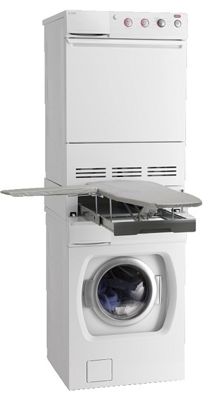 Выдвижная гладильная доска Asko HI115 W используется совместно со стиральными и сушильными машинами из серии Line Series. Благодаря своей конструкции, она не занимает отдельное место в доме, а размещается между установленными друг на друга моделями.