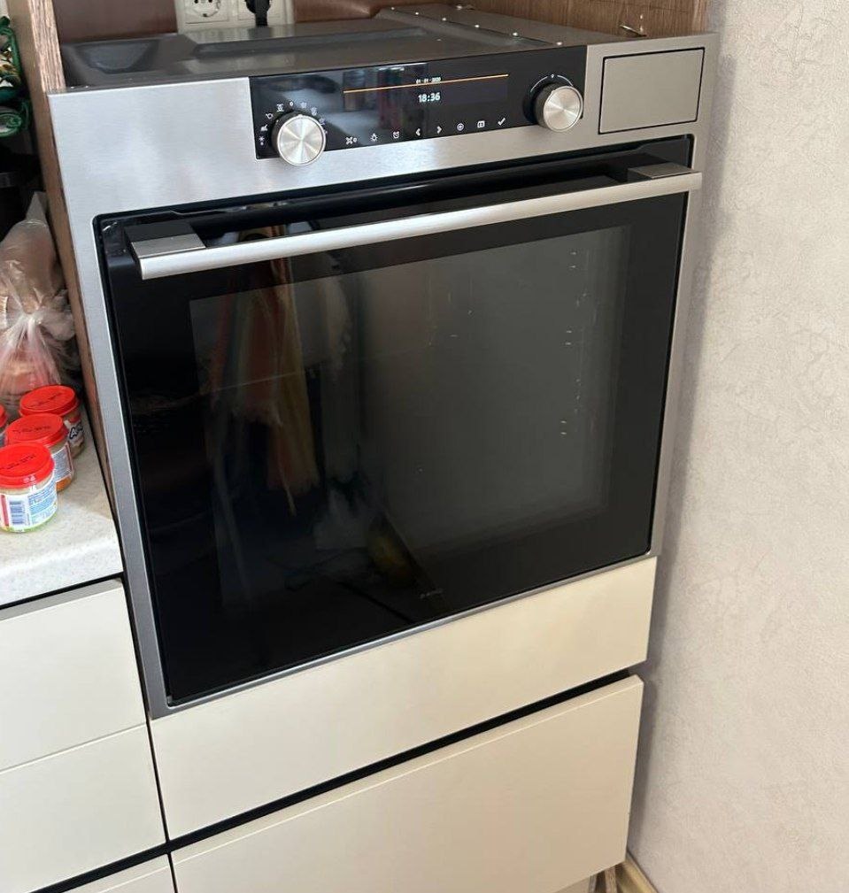 Духовой шкаф с паром увеличивает возможности устройства. Благодаря использованию пара блюдо не теряет своих вкусовых качеств. Вкусом и текстурой разогретая пища ничем не отличается от свежеприготовленной. При каждом использовании функции пара происходит опорожнение системы подачи воды. Оно сопровождается особыми звуками, которые являются нормальными.
