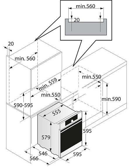 Размеры ниши, см 59 х 56-56.8 х 55