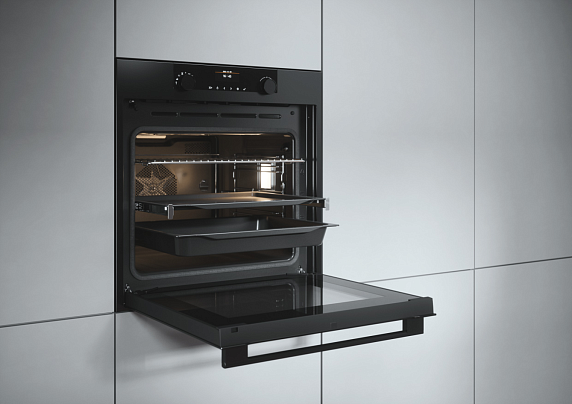 Класс энергопотребления А+ обеспечивает разумный расход электричества. Галогенное освещение дает возможность заглянуть в рабочую камеру, не открывая дверцу. Телескопические направляющие гарантируют безопасность и комфорт при извлечении тяжелых противней. Не придется носить их на руках — форму можно аккуратно выдвинуть на полозьях. Дверца открывается плавно и не захлопывается.
