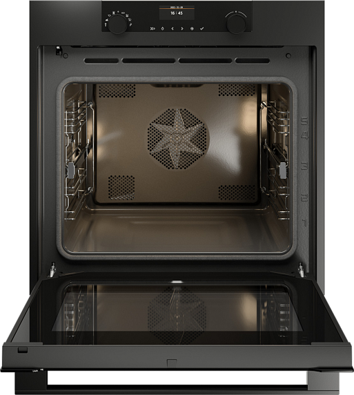Духовка отличается элегантным и современным дизайном, который прекрасно вписывается в современные интерьеры. Ее фасад выполнен в графитовом цвете серии "CRAFT", что придает устройству стильный и устойчивый к загрязнениям вид. Внутренние поверхности обрабатываются специальными материалами для легкой чистки и долговечности. Оснащенный удобной сенсорной панелью управления, этот шкаф предлагает интуитивно понятное использование и множество функций для оптимального приготовления блюд. Такой подход к дизайну и материалам обеспечивает не только эстетическую привлекательность, но и высокую функциональность устройства.