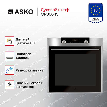 Духовой шкаф Asko OP8664S станет неотъемлемой частью вашей кухни и надежным помощником в приготовлении самых разнообразных блюд, благодаря своим передовым технологиям, интуитивному управлению и продуманной системе безопасности. Сочетая элегантный дизайн с функциональностью, он не только украсит интерьер, но и обеспечит безупречные результаты готовки — от повседневных гарниров до изысканных десертов.
