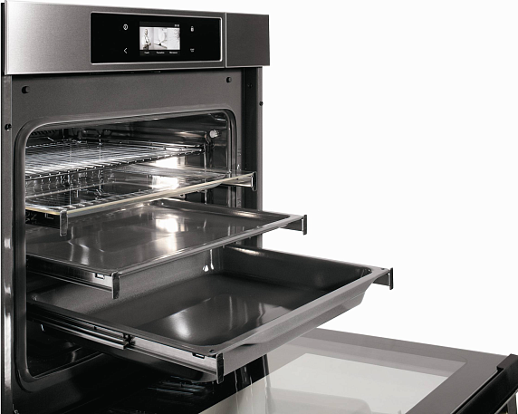 Телескопические направляющие на трёх уровнях существенно повышают удобство использования техники и безопасность при приготовлении пищи. Такая система позволяет легко ставить и вынимать противни и формы. Главное преимущество — это плавное выдвижение. Данные модели также оснащены стопорной системой, которая предотвращает случайное выпадение или выскальзывание противней при их выдвижении.