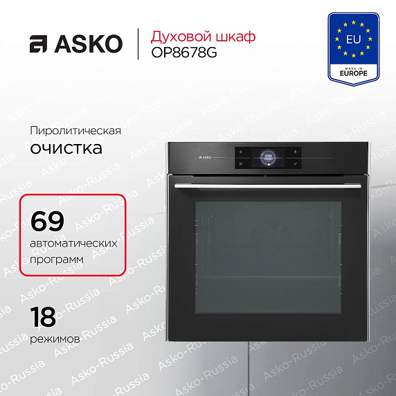 В модели доступно 69 автоматических программ, которые минимизируют участие пользователя и обеспечивают безупречный результат. Особое внимание уделено системе очистки: пиролитическая технология разлагает загрязнения до золы при температуре до 500°C, что значительно упрощает уход за устройством. Такая функция экономит время и силы, сохраняя камеру в безупречном состоянии.