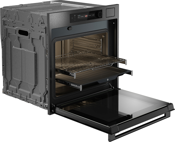 Технология Air Flow 360 гарантирует равномерное распределение тепла и циркуляцию воздуха внутри, что позволяет добиться оптимальных результатов при выпекании и запекании. Функция уменьшения влажности и возможность экоприготовления делают этот прибор не только удобным, но и экономичным. Телескопические направляющие на двух уровнях обеспечивают легкий доступ к блюдам, а UltraCoolDoorQuadro+ с четырьмя стеклами дверцы гарантирует безопасность и минимальное нагревание внешней поверхности.