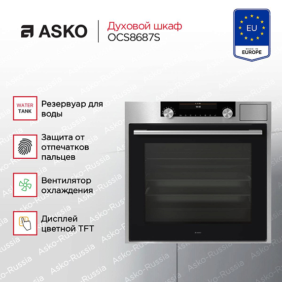 Аско OCS8687S сочетает высокую энергоэффективность и надежные системы безопасности для комфортного использования.