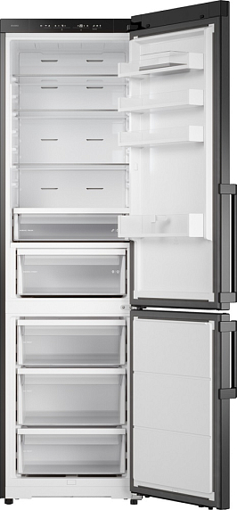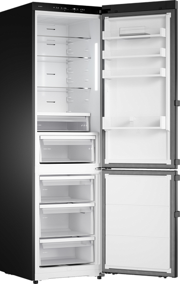 Внешний вид агрегата также привлекает внимание. Глубокий черный цвет и лаконичные формы делают его не только функциональным прибором, но и стилистически значимым элементом обстановки. Продуманная организация внутреннего пространства с регулируемыми полками и контейнерами способствует рациональному размещению запасов, а малошумный компрессор обеспечивает комфортную эксплуатацию.