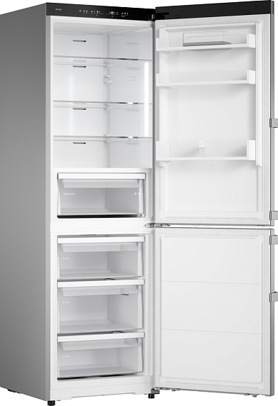 Управление осуществляется через сенсорную панель с дисплеем, обеспечивающую интуитивно понятную настройку. Температурные параметры регулируются плавно, а адаптивная система автоматически корректирует режимы в зависимости от загрузки и внешних условий. Для моментального охлаждения свежих покупок доступен режим Super Cool, а для быстрой заморозки — Fast Freeze. Аппарат способен замораживать до 10 кг продуктов за сутки — удобно после масштабного шопинга. Благодаря технологии Total NoFrost и системе Opti flow+ обеспечивается равномерная циркуляция воздушных потоков и автоматическое оттаивание, что полностью исключает ручную разморозку.