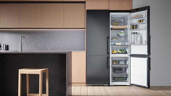 Уникальная технология обеспечивает не только эффективное охлаждение, но и оптимальный уровень влажности для таких требовательных продуктов, как ягоды, фрукты, свежее мясо или морские деликатесы. Если первые требуют более насыщенного влагой воздуха, то вторые, наоборот, менее, с учетом этого созданы два отделения с автоматической регулировкой как температуры, так и параметра влажности.