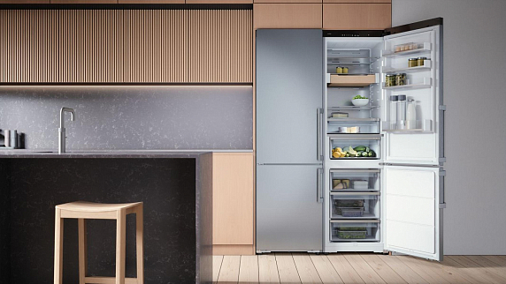 Холодильник оснащен современными системами охлаждения, которые равномерно распределяют холодный воздух, поддерживая стабильную температуру на всех уровнях. Это способствует сохранению вкусовых качеств и питательных свойств продуктов.