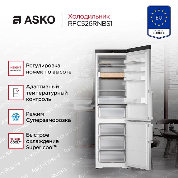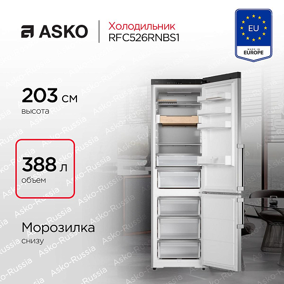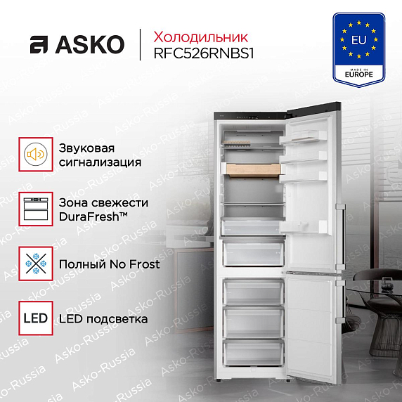Элегантный внешний вид холодильника ASKO RFC526RNBS1 прекрасно впишется в любой интерьер благодаря своему лаконичному черному цвету и минималистичному дизайну. Модель оснащена интуитивно понятной панелью управления, что делает эксплуатацию максимально удобной.