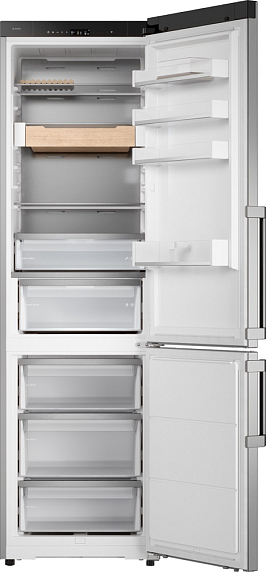 - Регулируемые полки и просторные ящики для максимального удобства хранения.
