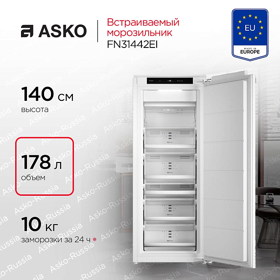 Встраиваемая морозильная камера ASKO FN31442EI является превосходным выбором для тех, кто ценит качество, функциональность и эстетику. Произведенная в Сербии, эта модель обладает впечатляющими характеристиками и станет незаменимым помощником на вашей кухне.