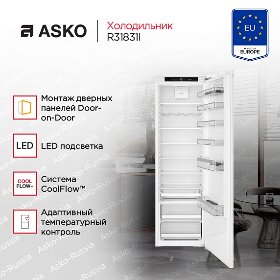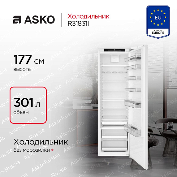 Встраиваемый холодильник ASKO R31831I представляет собой однокамерную модель серии Premium.