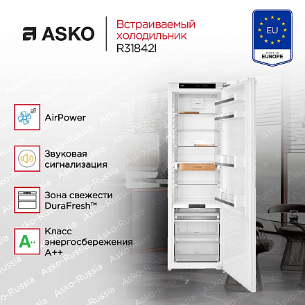 Встраиваемый холодильник Asko R31842I — это современное решение для вашей кухни, которое сочетает в себе стильный дизайн и передовые технологии. Белоснежный корпус изготовлен в Сербии и имеет компактные размеры: высота составляет 177.2 см, ширина — 55.5 см и глубина — 54.5 см, что позволяет легко встроить его в любую нишу размером 177.5-178×56-57×56 см.