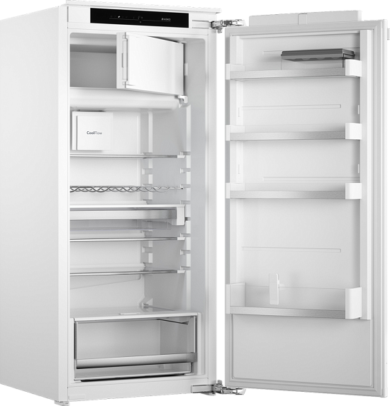 С белым цветом, который легко вписывается в любой интерьер, этот холодильник имеет удобные размеры: высоту 123 см, ширину 55,5 см и глубину 55 см, что позволяет его легко встроить в любую кухню. С учетом размеров ниши 123,3×57×56 см, он обеспечивает достаточное количество пространства для хранения продуктов с общим объемом 186 литров.