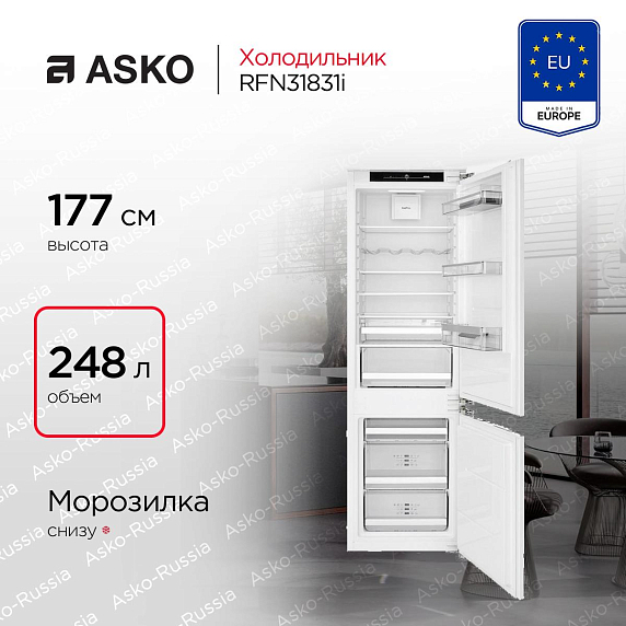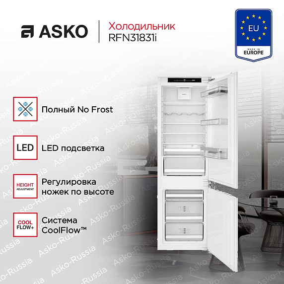 Встраиваемый комбинированный холодильник Asko RFN31831i