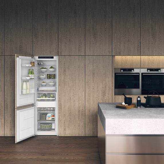 Встраиваемый комбинированный холодильник ASKO RFN31831i — двухкамерная модель с системой охлаждения Cool Flow™ и ионизатором.