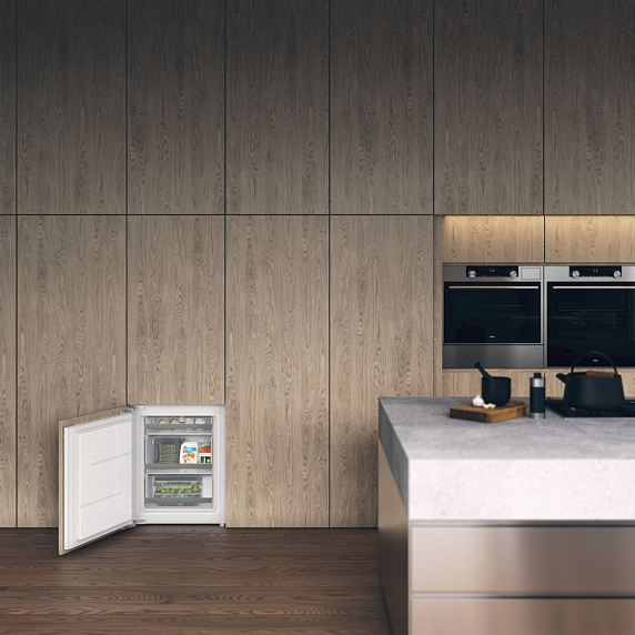 Двойной контур позволяет обоим отделениям работать независимо друг от друга. Это помогает точно настраивать температуру для каждой камеры, а запахам — не смешиваться. Встроенный вентилятор CoolFlow равномерно распределяет холод по всему объёму, а ионизатор FreshAir уничтожает лишние запахи и бактерии. Контейнер для Freshbox с контролем влажности создаёт оптимальный микроклимат для растительной пищи, что позволяет овощам и фруктам дольше оставаться свежими. Специальная металлическая полка рассчитана на вес в 13 кг. Это 9 бутылок по 0,75 литра или 18 алюминиевых банок с напитками.