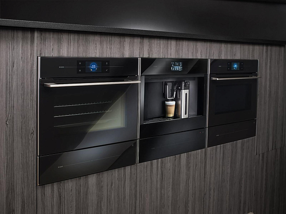 Автоматическая кофемашина Asko CM8478G из дизайнерской линейки Elements выполнена с фасадом из чёрного стекла. Это современное решение добавляет стиль и упрощает уход за фронтальной частью устройства.