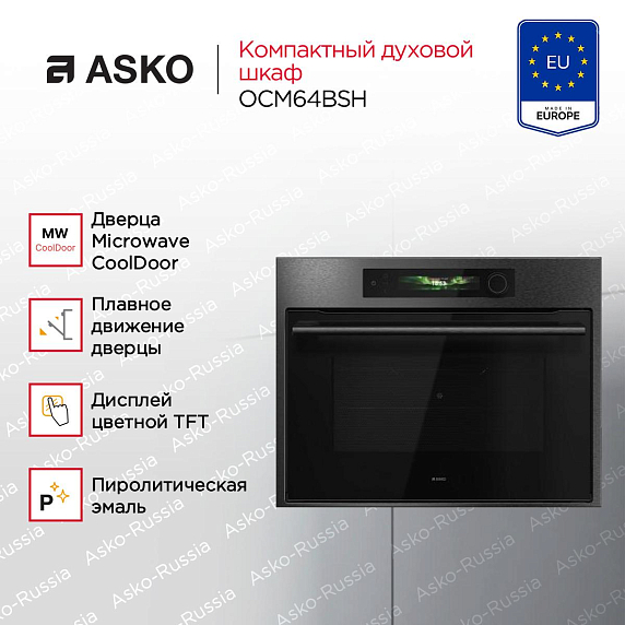 Компактный духовой шкаф ASKO OCM64BSH с микроволнами — это уникальное сочетание элегантного дизайна и передовых технологий. Прибор из серии CRAFT отличается высоким качеством и надежностью. В отделке корпуса использована черная нержавеющая сталь, это придает устройству современный и стильный вид, который будет гармонировать с любым интерьером кухни.