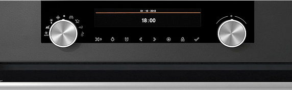 Управление ручкой JogDial представляет собой два утапливаемых поворотных регулятора. Они плавно переключают параметры, выводимые на чёткий текстовый дисплей. Как правило, такая система навигации состоит из двух ручек. С помощью левой можно настраивать необходимые режимы функционирования духового шкафа. Правая же отвечает за выбор настроек.