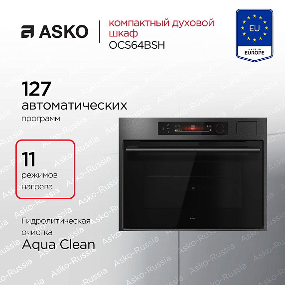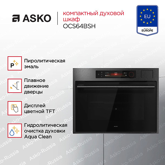 Компактный духовой шкаф ASKO OCS64BSH — это сочетание современного дизайна и передовых технологий, которые делают процесс приготовления пищи легким и приятным. Изготовленный в Словении, он принадлежит к серии CRAFT и выполнен в стильном цвете черной нержавеющей стали, что придает ему элегантный и современный вид. Его компактные размеры (высота 45 см, ширина 59 см, глубина 56 см) позволяют легко интегрировать его в любую кухню, а благодаря классу энергопотребления A++, он является экономичным в использовании. Сенсорное управление и цветной TFT-дисплей обеспечивают удобство в управлении и настройке различных программ и режимов.