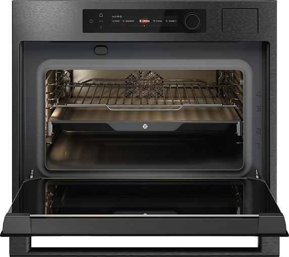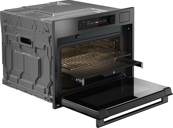 Безопасность и комфорт использования также на высоком уровне. Три стекла дверцы и защита от детей гарантируют безопасность, а плавное движение дверцы и телескопические направляющие на одном уровне обеспечивают комфорт при эксплуатации. Двухстороннее освещение позволяет контролировать процесс приготовления, а функция поддержания температуры приготовленных блюд сохраняет их теплыми до подачи на стол. В комплект входят решетка и три противня из нержавеющей стали, что делает прибор еще более функциональным и удобным в использовании.