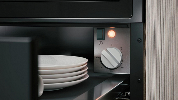 Устройство оснащено множеством функций, которые делают его незаменимым помощником на кухне. Оно способно не только подогревать тарелки и чашки, но и размораживать и разогревать пищу, а также приготовлять на низкой температуре. Управление осуществляется с помощью поворотной ручки, что делает его использование простым и удобным. Телескопические направляющие обеспечивают легкость и удобство при использовании.