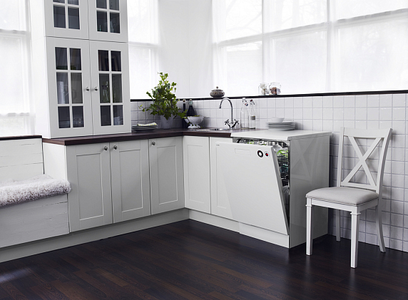 Максимальная вместимость - 15 стандартных комплектов, благодаря чему данная посудомоечная машина оптимально подойдет для большой семьи из 5 человек. При этом количество загруженной посуды никак не влияет на качество ее очистки - система мойки с использованием 7-ми зон подачи воды позволяет максимально эффективно использовать весь внутренний объем рабочей камеры. Еще одним преимуществом устройства является вариативность способов установки. Модель является отдельностоящей, однако, в случае необходимости, предусмотрена возможность монтажа под столешницу кухонного гарнитура (при данном виде размещения вокруг корпуса устройства должен сохраняться зазор в 3 мм). Модель практична и безопасна в использовании. Внутренние элементы из нержавеющей стали, устойчивы к коррозионному воздействию, а потому невероятно долговечны. Замок KidLock™ блокирует дверцу на время всего цикла работы, а система защиты от протечек AquaSafe™ исключает риск затопления помещения.