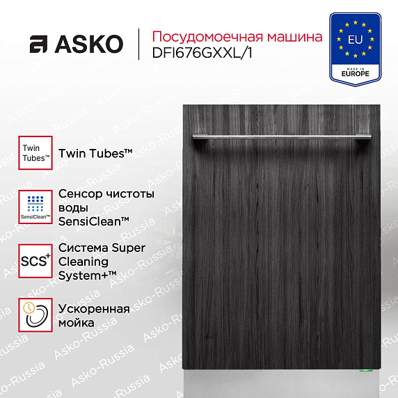Эта модель оснащена 13 программами, включая интенсивную, быструю, экологическую, ночную, автоматическую, ежедневную, гигиеническую, по времени, для пластика и хрусталя, а также QuickPro. Корзины предусмотрены как нижняя, так и верхняя. Присутствует функция автооткрывания двери и отложенный старт до 24 часов. Сушка осуществляется по технологии Turbo Combi. Особенностью является система самоочистки Super Cleaning System™. Дополнительно оборудована зонами усиленной мойки: PowerZone JetSpray™, PowerZone Cutlery™, PowerZone WideSpray™. Имеется разделенная зона подачи воды в средней корзине — Twin Tubes™. Сенсор чистоты воды SensiClean™ обеспечивает оптимальное качество мойки. Защита от протечек реализована через систему AquaSafe™. Блокировка от детей KidSafe™ делает использование устройства безопасным в доме с маленькими детьми.