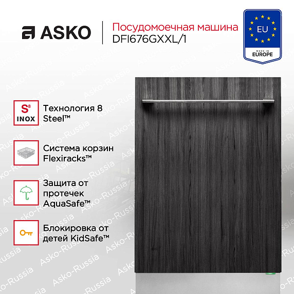 Эта техника выполнена в стильном дизайне из нержавеющей стали, включая панель управления и внутреннюю камеру. В ее конструкции присутствует технология 8Steel™, что гарантирует долговечность и надежность. Дверь устройства цельнометаллическая, что также способствует продолжительному сроку службы. Удобство использования обеспечивает регулируемая задняя ножка и встроенный антисифон. Устройство оснащено 11 зонами подачи воды Spray™, обеспечивающими эффективное и равномерное мытье посуды. Система корзин Flexiracks™ предлагает четыре корзины, что позволяет оптимально распределить посуду внутри машины. Управление происходит с помощью скрытой панели, оснащенной электронным типом управления и ЖК-дисплеем. На панели управления имеются индикаторы наличия соли и ополаскивателя, а также индикатор остаточного времени и индикатор окончания цикла StatusLight™. Эти функции делают использование посудомоечной машины максимально простым и информативным.