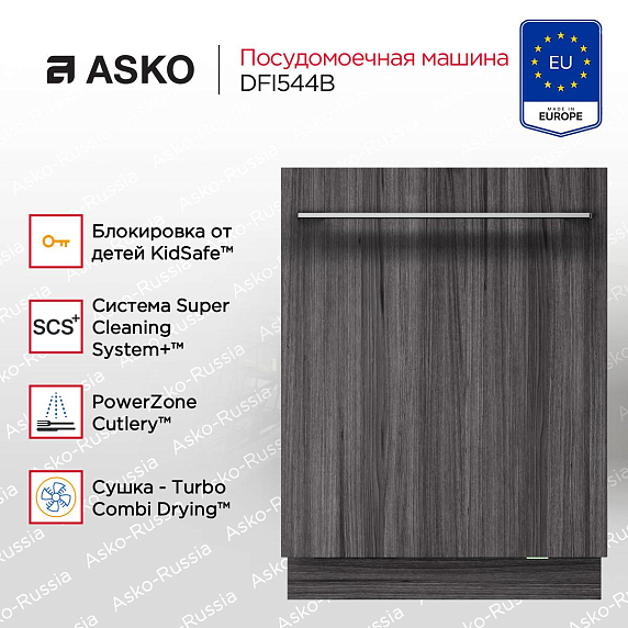 Встраиваемая посудомоечная машина ASKO DFI544B - это высококачественное бытовое оборудование, произведенное в Словении, которое сочетает в себе эстетику дизайн-линии Logic и функциональность современной технологии. Она полностью встраивается в кухонный гарнитур, обеспечивая гармоничное сочетание с общим интерьером. Стильный титановый цвет панели управления и цельнометаллическая дверь подчеркивают ее современный дизайн.