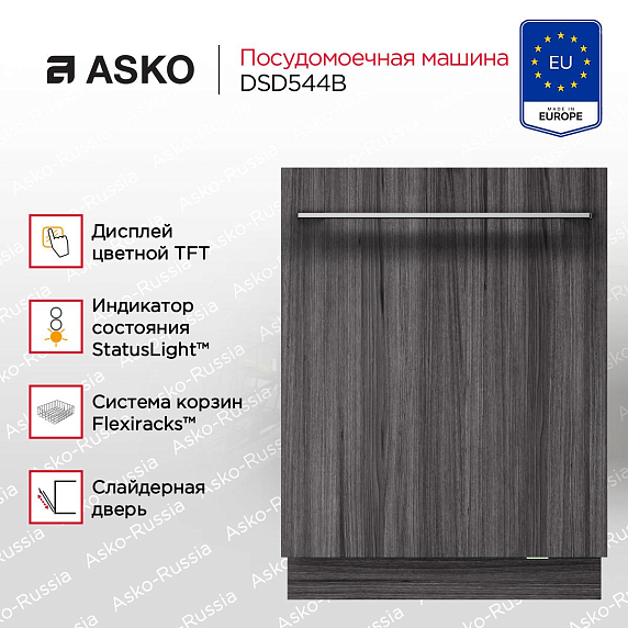 Машина ASKO DSD544B произведена в Словении и обладает гарантией на 24 месяца, что подтверждает ее высокое качество и надежность.