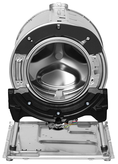Жесткое крепление бака при помощи четырех независимых стальных направляющих, крепящихся к оцинкованному основанию, не только обеспечивает высокую надежность конструкции, но и полностью гасит все вибрации. Поэтому даже при скорости отжима в 1800 оборотов машинка остается устойчивой и работает практически бесшумно