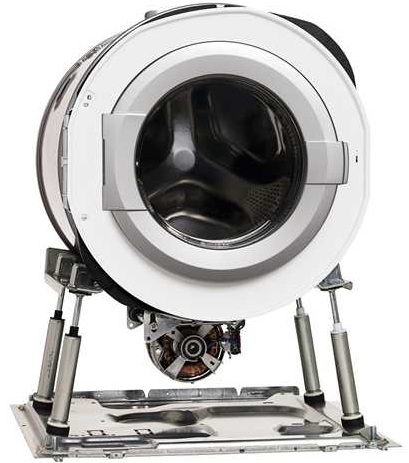 Жесткое крепление бака при помощи четырех независимых стальных направляющих, крепящихся к оцинкованному основанию, не только обеспечивает высокую надежность конструкции, но и полностью гасит все вибрации. Поэтому даже при скорости отжима в 1800 оборотов машинка остается устойчивой и работает практически бесшумно