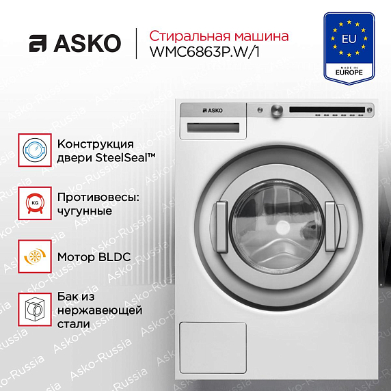 Стиральную машину ASKO WMC6863P W-1 — современное решение для домашнего использования от шведского производителя, заслужившего мировое признание. Эта модель представляет собой отдельностоящую машину с фронтальной загрузкой, что обеспечивает удобство и комфорт в использовании. Благодаря компактным размерам (высота — 85 см, ширина — 59.5 см, глубина — 58.5 см), она легко впишется в любой интерьер и не займет много места в вашем доме. Она оснащена вместительным барабаном объемом 60 литров, что позволяет стирать до 8 кг белья за один цикл. Это делает ее идеальным выбором для больших семей и тех, кто ценит свое время. Скорость отжима достигает 1600 оборотов в минуту, что обеспечивает эффективное удаление влаги из белья и сокращает время его сушки. Одним из ключевых преимуществ модели является высокий класс энергопотребления — A+++. Это означает, что машинка потребляет минимальное количество электроэнергии, что позволяет сэкономить на коммунальных платежах и снизить воздействие на окружающую среду. Класс стирки и отжима — A и B соответственно, что гарантирует отличные результаты стирки и эффективный отжим.