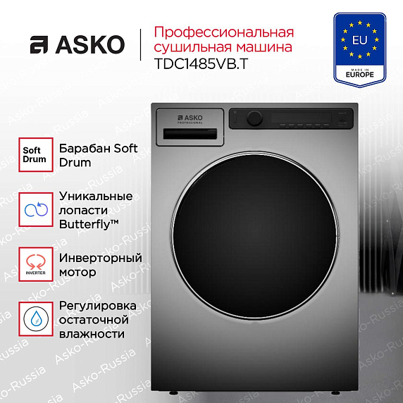 Профессиональная сушильная машина Asko TDC1485VB T — это высокотехнологичный продукт, произведенный в Словении. Модель относится к серии Professional и предназначена для профессионального использования. Стильный титановый цвет корпуса и черная панель управления придают ей современный и привлекательный внешний вид.