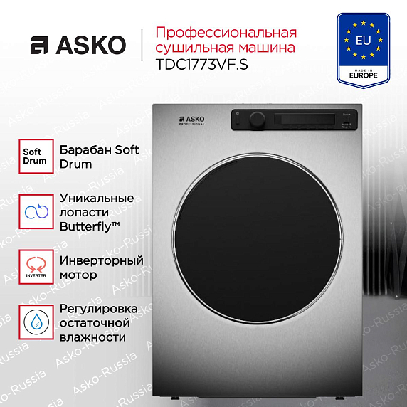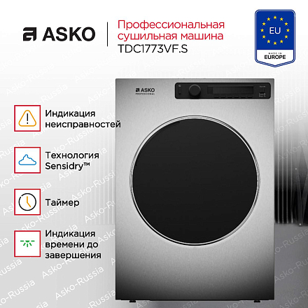 Сушильная машина Asko TDC1773VF. S MARINE выполнена в цвете «титан». Индукционный мотор обеспечивает тихую работу и длительный период эксплуатации прибора. Она отличается высокой надежностью, функциональностью и практичностью, рассчитана на многократное ежедневное использование каждый день. Барабан из нержавеющей стали.