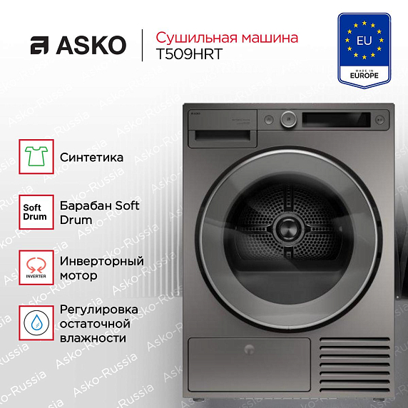 Сушильная машина ASKO T309HCW — это элегантное и функциональное решение из серии Classic с белоснежным корпусом и панелью управления в едином стиле. Её лаконичный дизайн легко вписывается в любой интерьер, а возможность перенавесить дверцу делает установку гибкой даже в ограниченном пространстве. Габариты — 85 × 59,5 × 63 см — позволяют разместить прибор как отдельно, так и в колонну с другой техникой. Длина кабеля 210 см упрощает подключение к стандартной сети 220–240 В / 50 Гц.