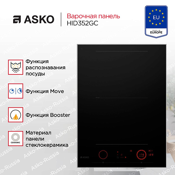 Стильный черный дизайн с металлической рамкой и стеклокерамической поверхностью делает варочную панель Аско HID352GC не только функциональной, но и элегантной. Она легко интегрируется в любой кухонный интерьер, придавая ему современный вид. Индикатор остаточного тепла и возможность одновременного отключения всех зон обеспечивают безопасность, а благодаря термощупу CelsiusCooking ваша пища всегда будет идеально приготовлена.