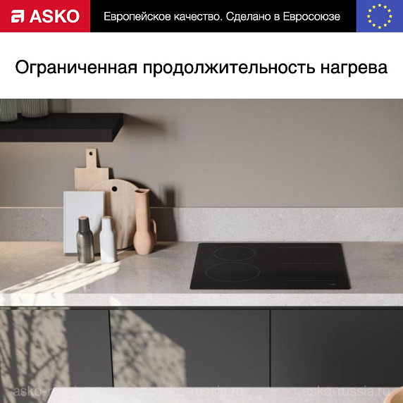 Индукционная варочная панель Asko HI1621G выполнена в элегантном черном цвете и монтируется над столешницей.