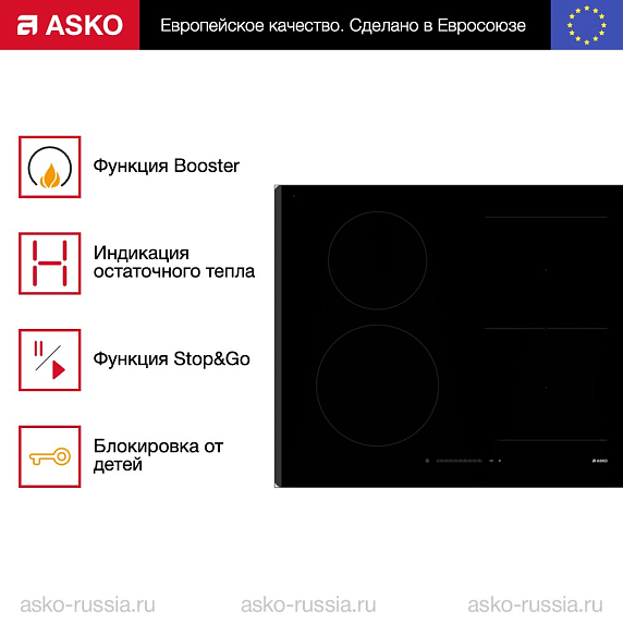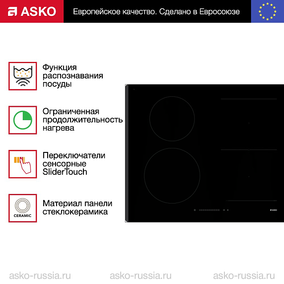 Отличительной особенностью Asko HI1621G является наличие двух объединяющихся зон нагрева Bridge, благодаря чему можно готовить в нестандартной посуде, такой как утятница. Управление осуществляется при помощи удобных и простых слайдерных переключателей SliderTouch, каждая из зон имеет 10 ступеней регулировки мощности.