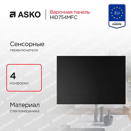 Варочная панель Аско HID754MFC имеет 4 конфорки с общей мощностью 14.8 кВт, что позволяет вам использовать несколько зон одновременно, ускоряя процесс готовки больших обедов или ужинов. Сенсорное управление и наличие дисплея делают использование этого устройства максимально удобным. Кроме того, вы можете управлять ей со своего мобильного устройства через Wi-Fi, что позволяет вам дистанционно устанавливать нужные параметры даже не приходя на кухню и проверять, не забыли ли вы выключить поверхность, даже находясь вне дома.