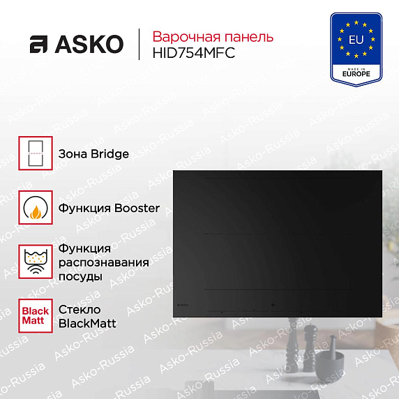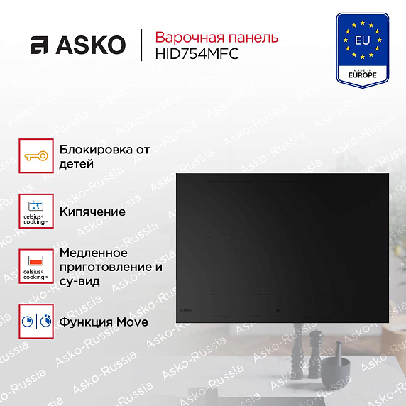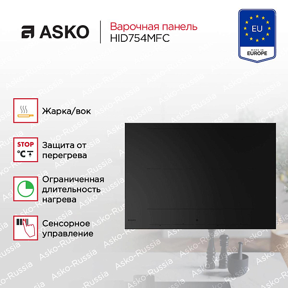 Варочная панель Asko HID754MFC — это инновационное решение для вашей кухни, обладающее всеми необходимыми функциями для комфортного приготовления пищи. Основное преимущество этой модели — индукционный способ нагрева, который обеспечивают быстрый и точный нагрев благодаря использованию электромагнитных полей. Эта технология запускает мгновенное нагревание дна и стенок посуды, а также высокий коэффициент полезного действия, что позволяет сократить время работы и экономить энергию. С ее помощью вы сможете готовить блюда любой сложности.