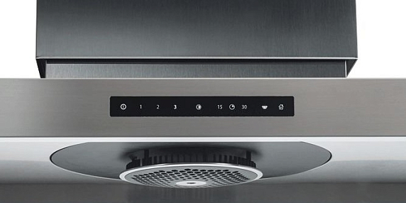 Дисплей в большинстве случаев встречается на вытяжках с сенсорным управлением и реже — с кнопочным. Он может быть небольшим и отображать только выбранную скорость или время, или же стать полноценной частью навигации. Во втором случае на нём также располагаются клавиши управления и различные индикации, например, о загрязнении фильтра.